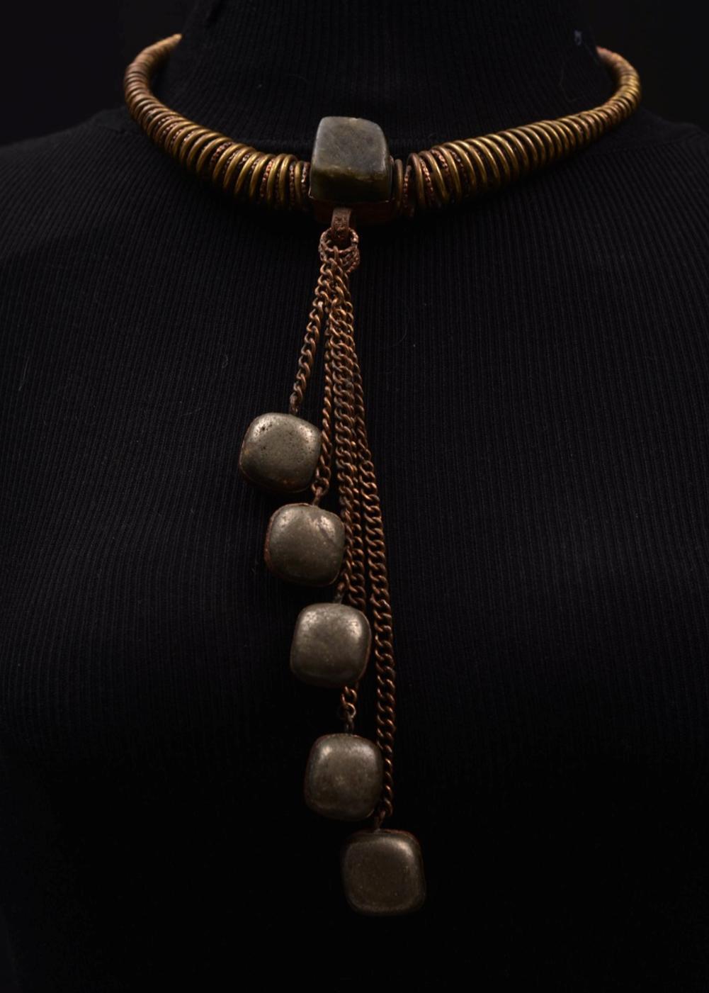 Elevate your jewelry collection with our handcrafted copper choker necklace, designed to make a bold statement while embracing the power of natural elements. This stunning piece is made from pure copper and set with two mesmerizing stones – pyrite and labradorite – known not just for their beauty, but also their metaphysical benefits.